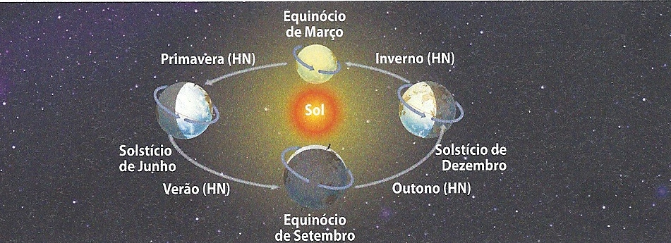 Equinócio de Março (Primavera) Dia = Noite (12horas dia/Noite)